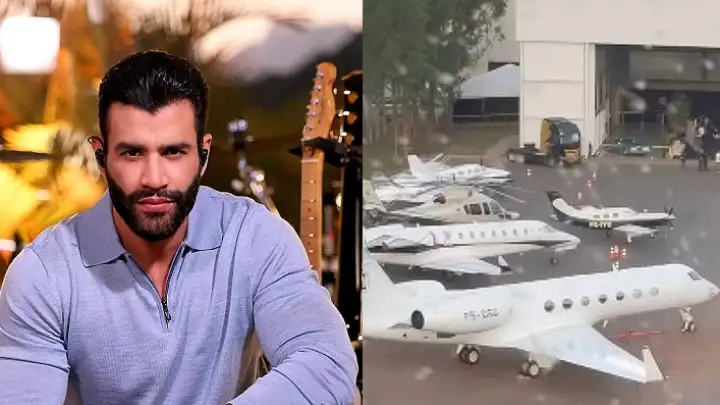Evento na casa de Gusttavo Lima choca internautas pela quantidade de aviões estacionados
